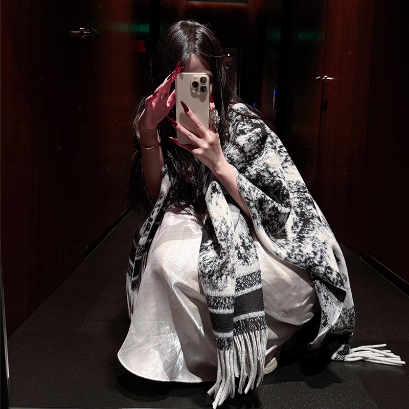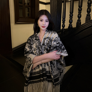 复古水墨画披肩女外搭2025新款 高级氛围感披风斗篷百搭围巾女 韩版