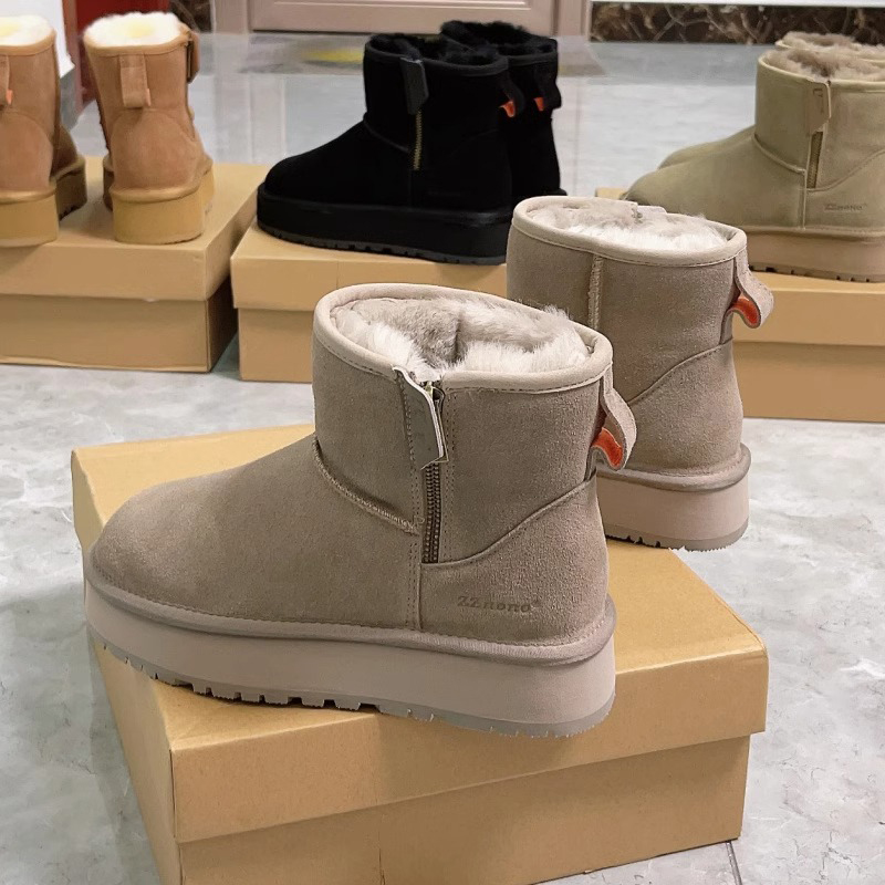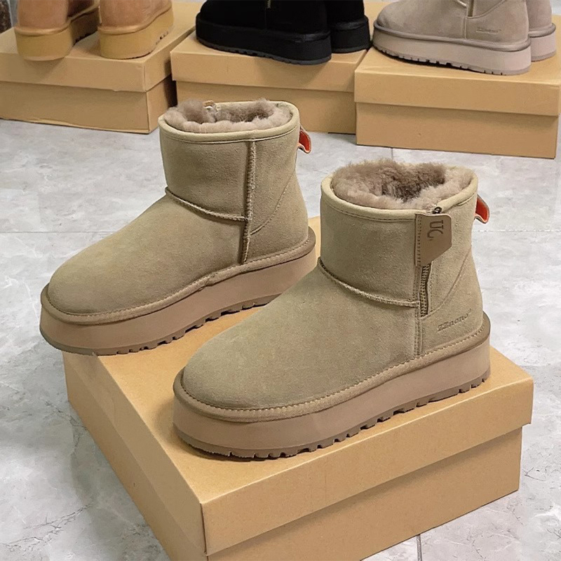 防水 棉靴加绒加厚侧拉链东北棉鞋 厚底雪地靴女款 皮毛一体2024新款