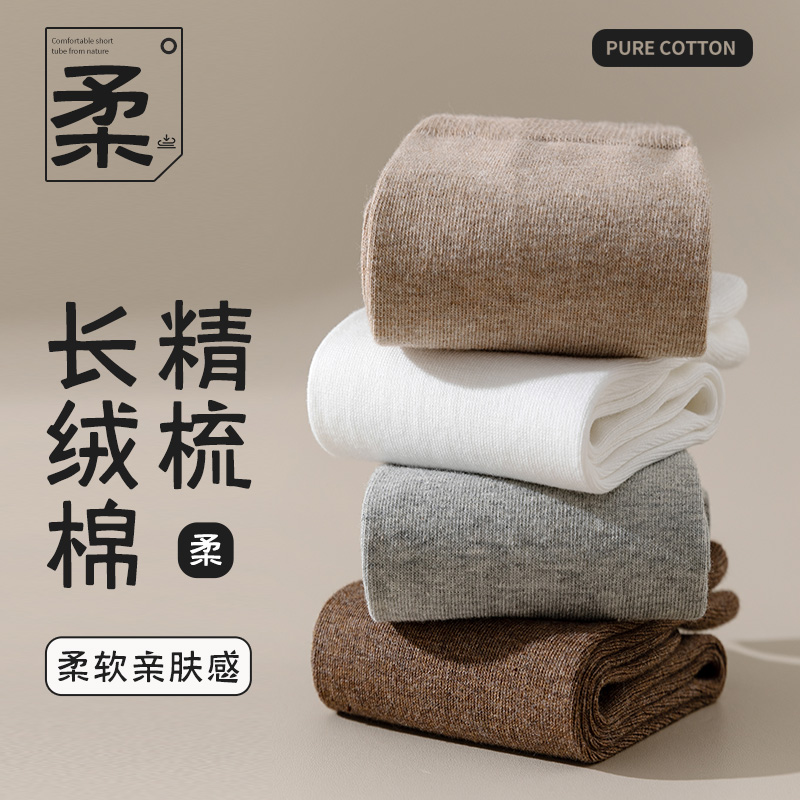 棉伙棉伴海藻袜舒适抗菌防臭男女商务运动纯色裸感中筒袜