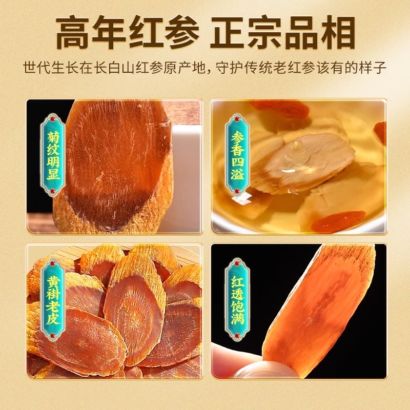 红参正品 官方旗舰店中药材长白山人参片非高丽参人参干西洋参切片