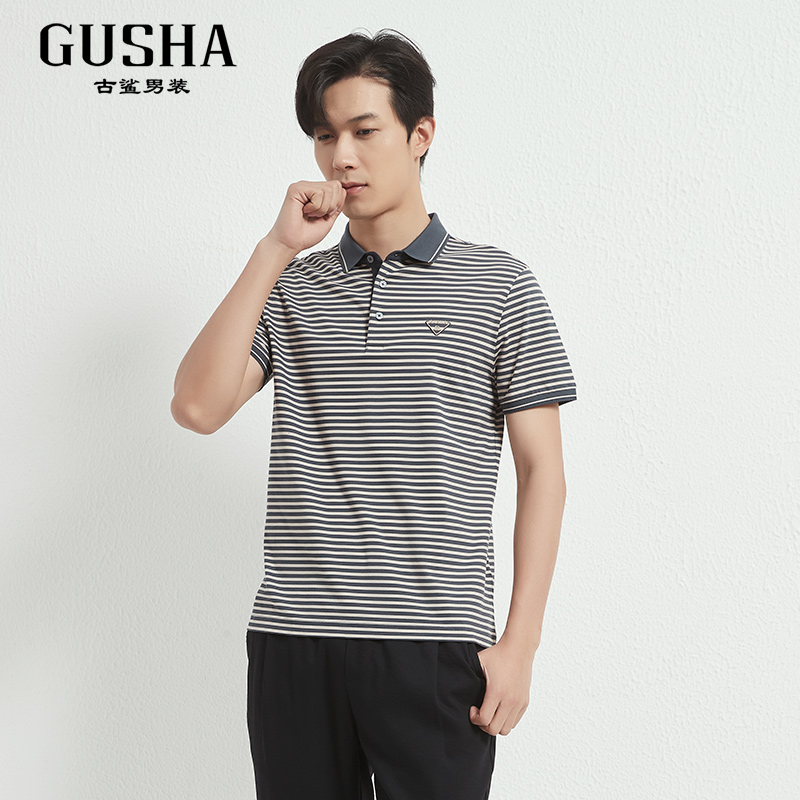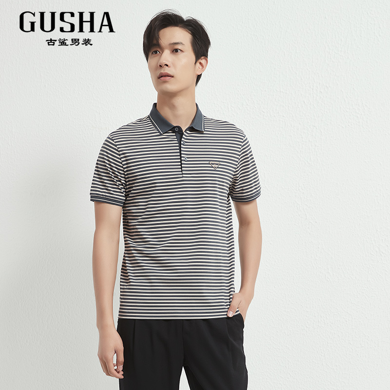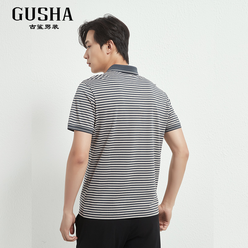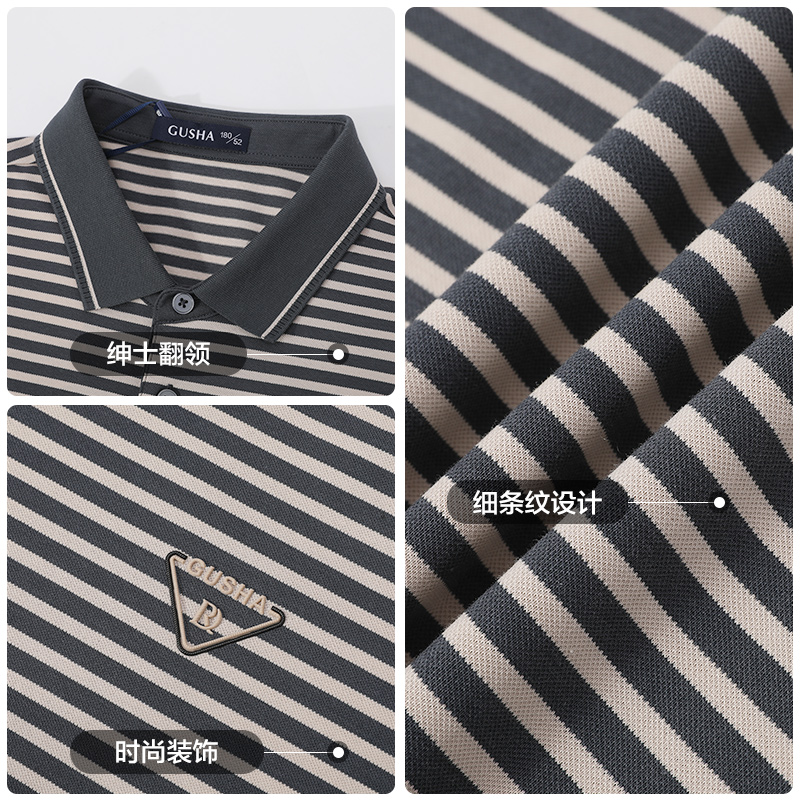 新款 男高端天丝凉感商务t恤2025年夏装 polo衫 古鲨蓝色条纹短袖