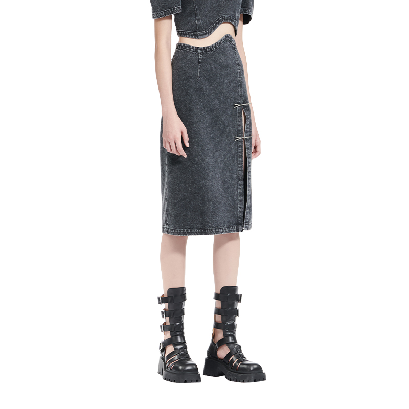 YES YESIR叶谦原创设计师复古风波浪牛仔半裙 李莎旻子同款