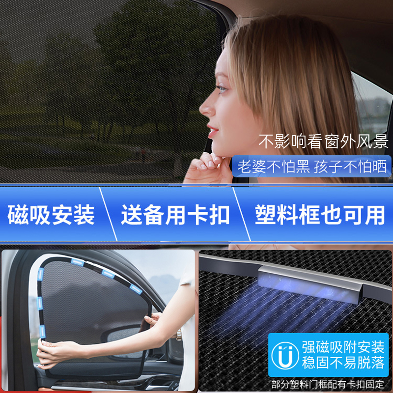车窗遮阳帘磁吸车载防晒纱窗车防蚊车内汽车上侧窗嵌入式 隔热窗帘