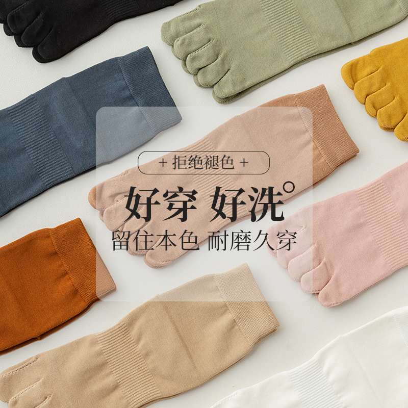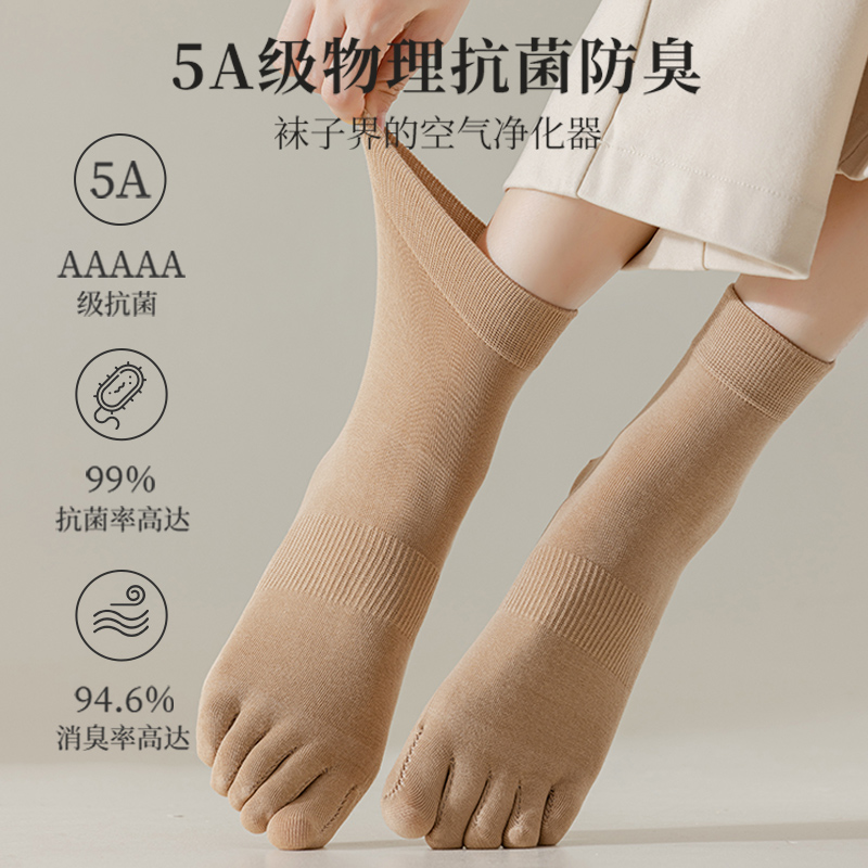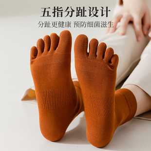 五指袜女秋冬季 全棉分脚趾袜子 纯棉中筒防臭放脚气抗菌吸汗春秋款