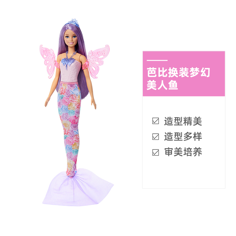 梦幻美人鱼系列童话世界套装 芭比娃娃换装 过家家女孩礼盒 自营
