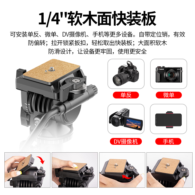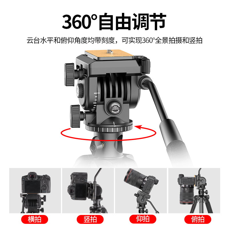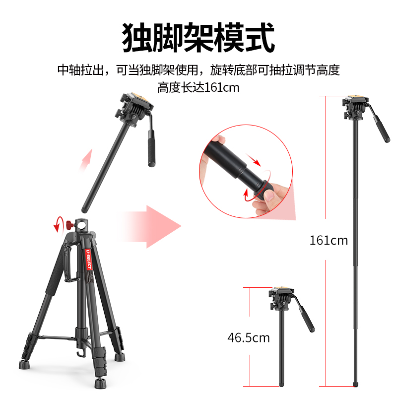 优篮子VT 02摄像三脚架单反微单相机摄影短视频俯拍手机三角支架手把柄液压阻尼云台独脚架中轴横置杆三脚架