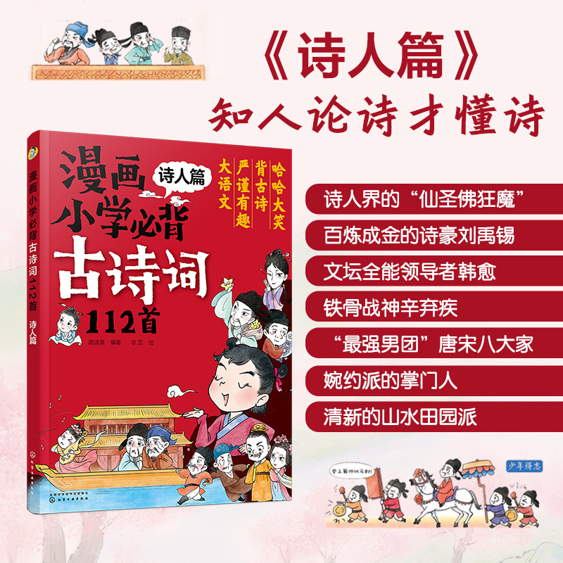 6年级小学生必背古诗词大全 12岁儿童文学古诗词注音版 节山河小学语文古诗知识漫画绘本 漫画小学必背古诗词112首 诗人季 4册