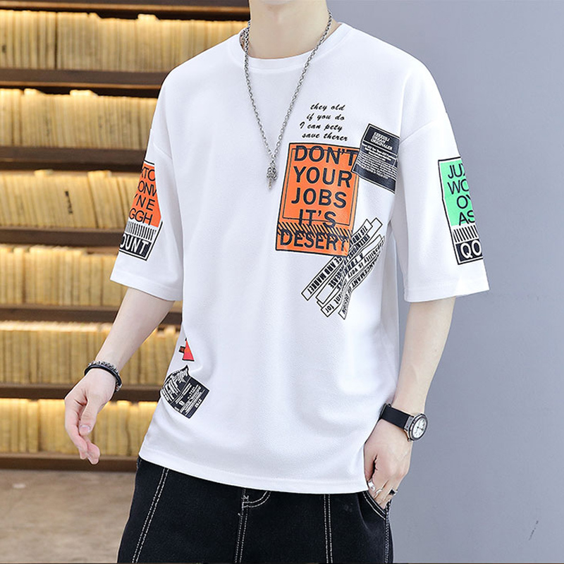 港风宽松夏天半截袖 t恤男生潮流五分袖 上衣服 潮牌短袖 2025年夏季