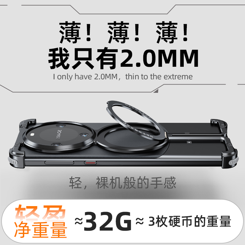 派凡π壳骨架适用华为mate60pro手机壳金属无边框异形外壳 保护套铝合金meta 镂空裸机带磁吸支架半包散热新款