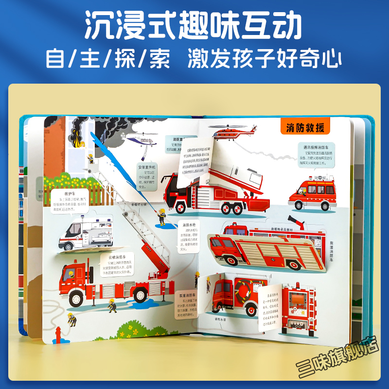 揭秘系列儿童立体翻翻书3d立体书 身体交通工具地球地下食物城市自然微生物百科全书早教启蒙益智书 揭秘汽车海洋太空恐龙人体我