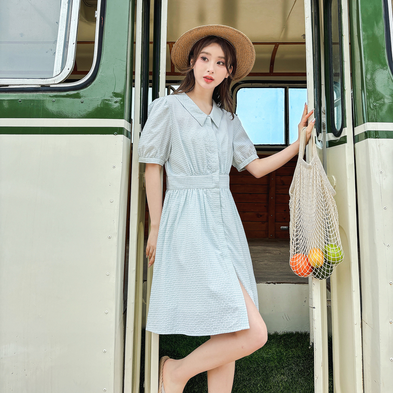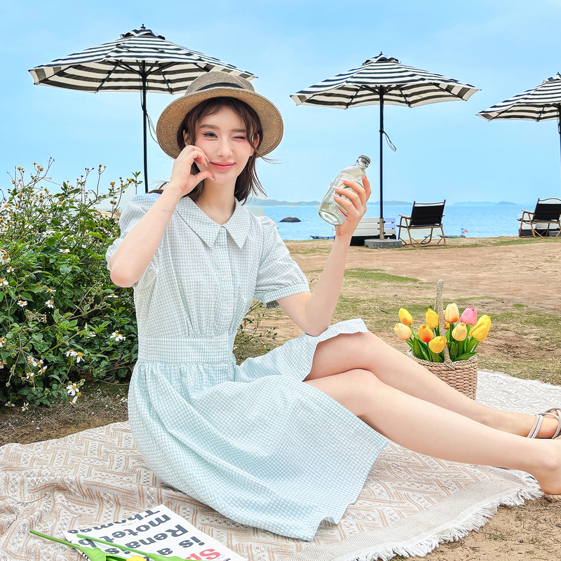 薄荷曼波 气质女装 唐狮短袖 女夏季 夏天裙子 绿色连衣裙2025新款