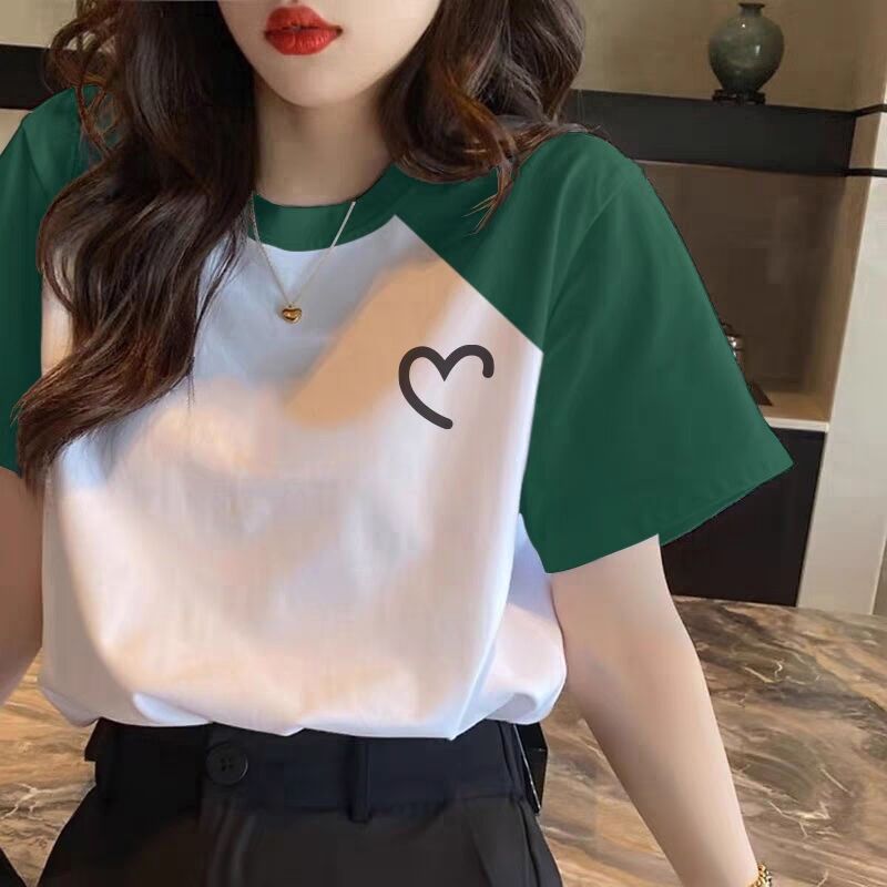 学生大码 欧货大版 新款 插肩T恤女夏季 撞色宽松显瘦上衣ins 纯棉短袖