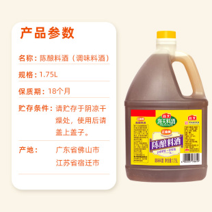 海天陈酿料酒1.75L烹饪黄酒去腥解膻增鲜厨房提味调味料商用炒菜