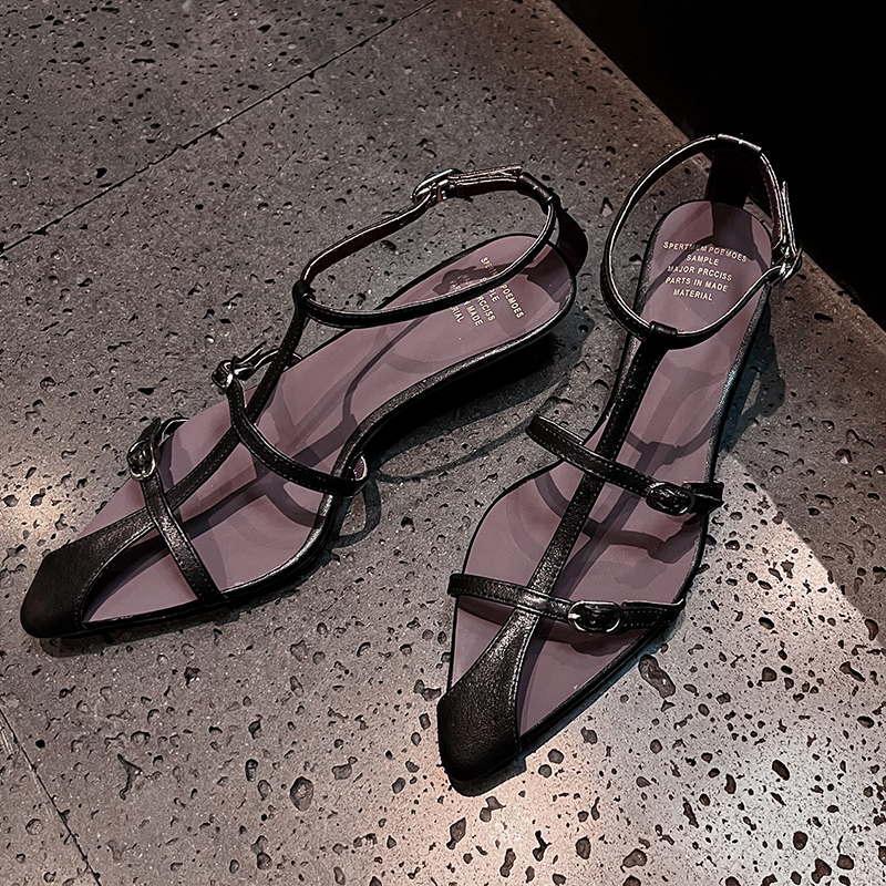 凉鞋 热带沙滩 新款 牛皮细带露趾透气异形跟夏季 女 ins度假风罗马鞋