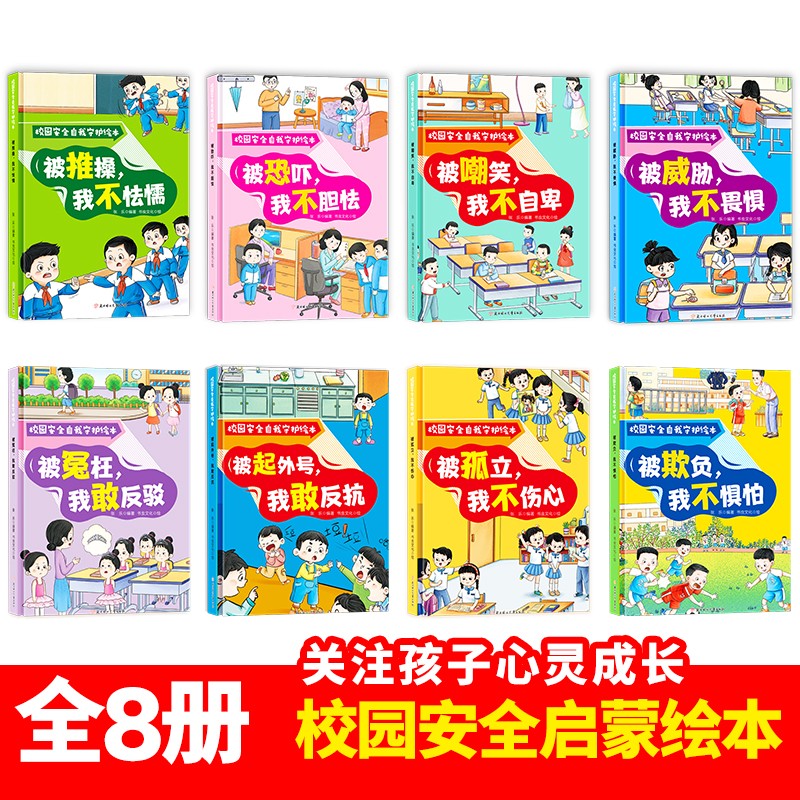 校园安全自我守护绘本 精装 8岁幼儿童早教启蒙成长图画故事书亲子共读睡前故事课外书 硬壳硬皮幼儿园绘本 全8册