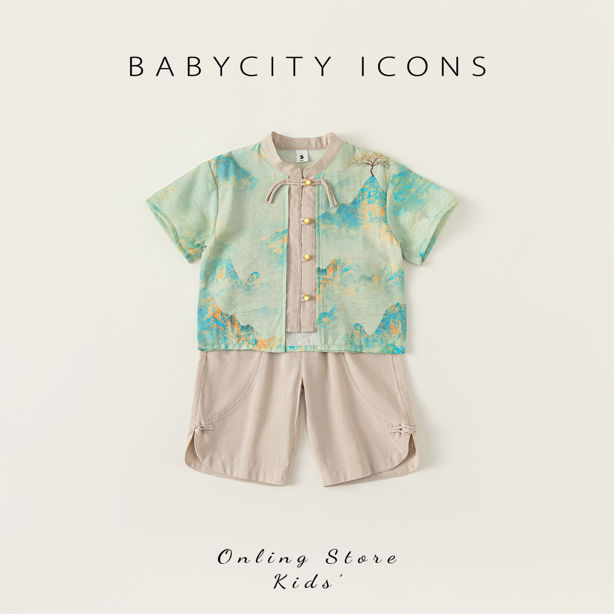男童周岁生日国风两件套时髦夏装 贝贝城宝宝唐装 套装 新中式 潮 夏季