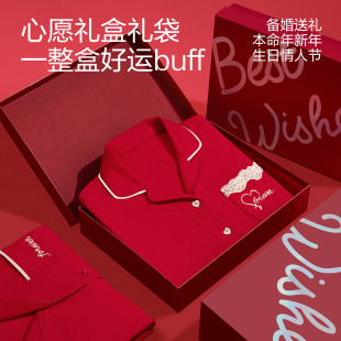 新年家居服套装 红豆红色情侣睡衣纯棉女结婚礼物男士 本命年春秋季