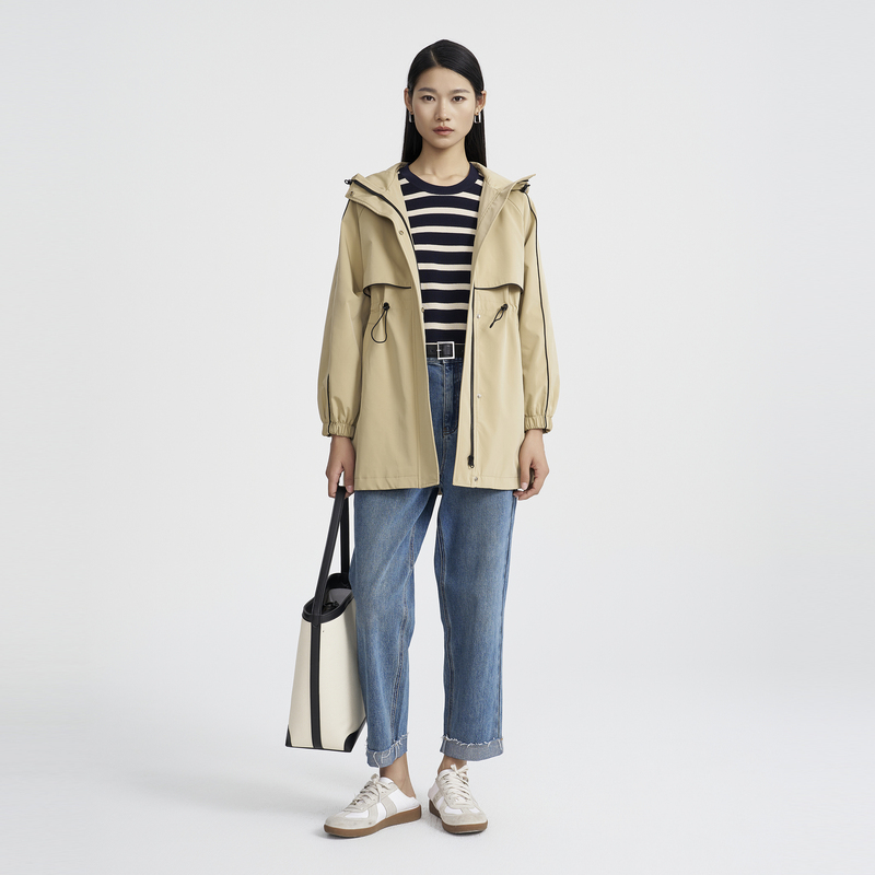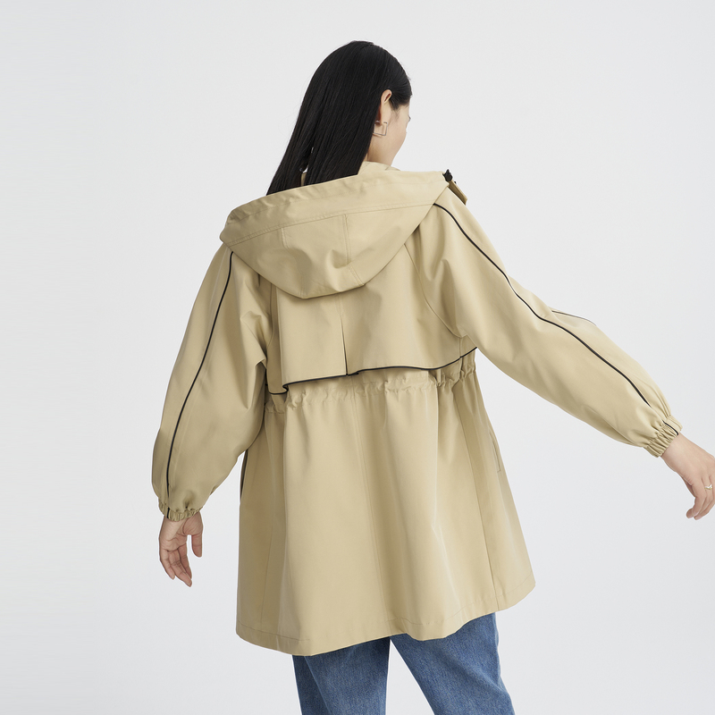连帽拉绳收腰下摆A字廓形风衣外套女装 春夏新款 商场同款 OTT