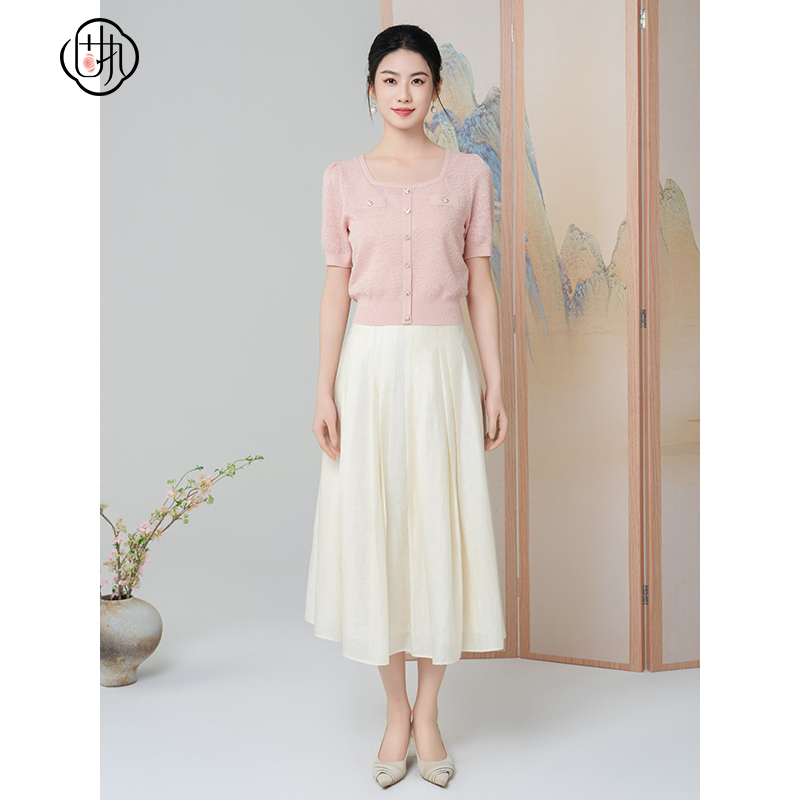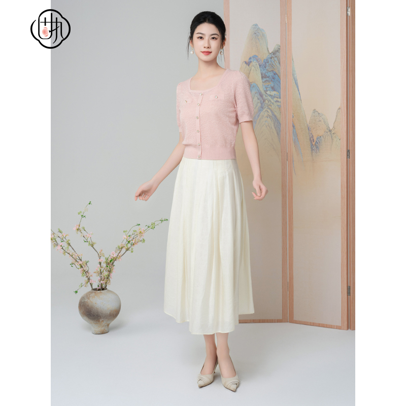 a字半身裙 复古气质百褶高腰显瘦纯色百搭中长款 固执2025夏季 新款