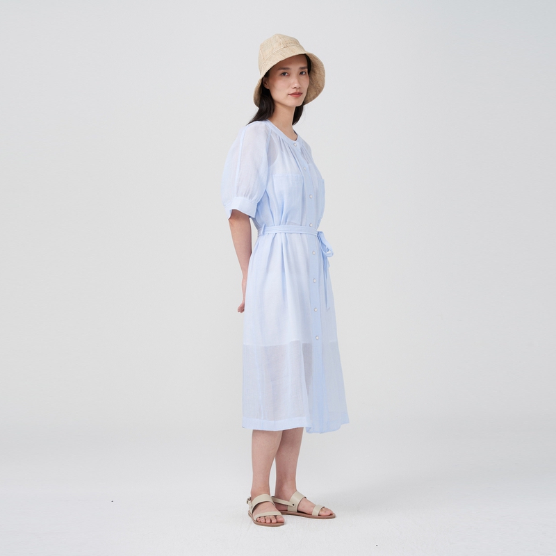 连衣裙 女士气质环保棉纱罗棉布圆领碎褶长款 素然klee klee夏季