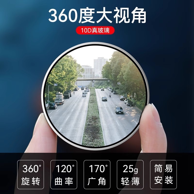 汽车后视镜小圆镜倒车神器盲区辅助镜反光镜360度无边吸盘式 超清