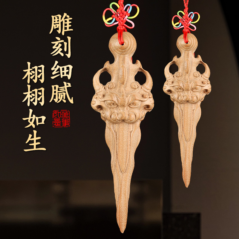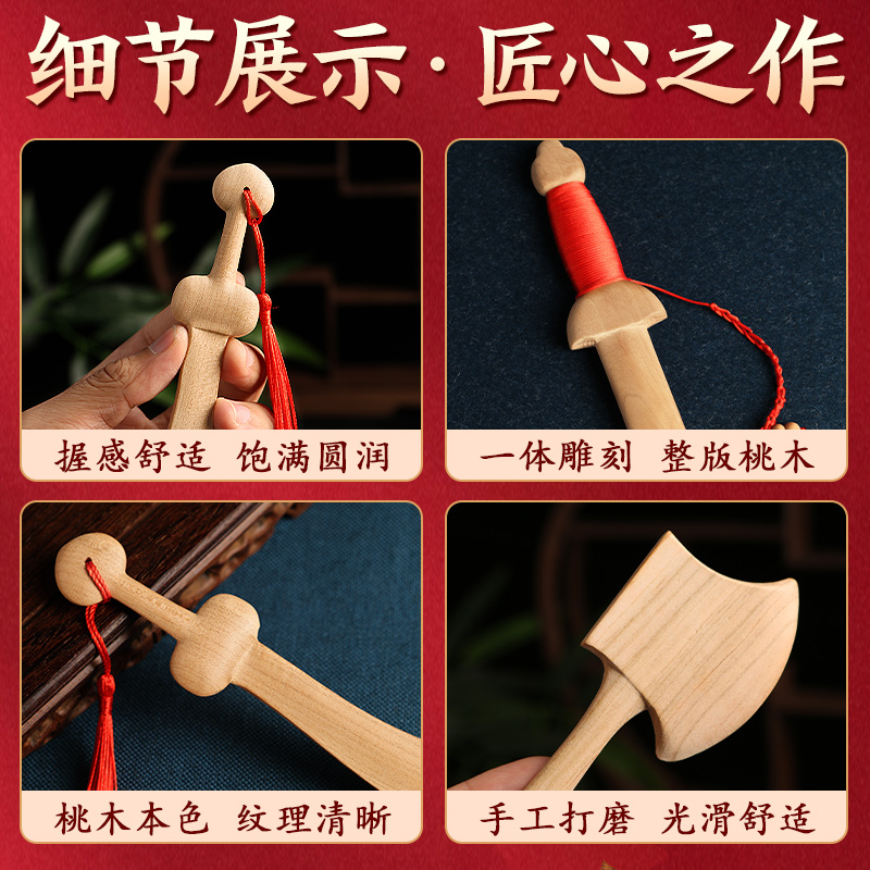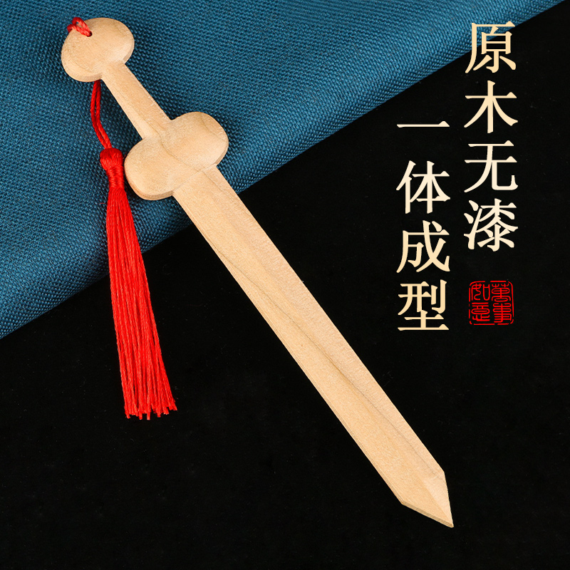 纯桃木剑挂件婴儿小短剑一体无漆实木剑刀剑斧儿童玩具宝剑身手工