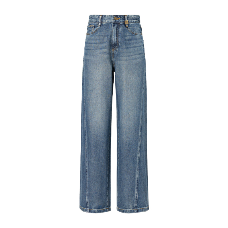 女2025年新款 子女装 秋季 复古宽松直筒阔腿裤 504791 时尚 三福牛仔裤