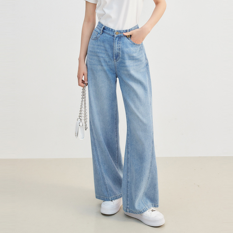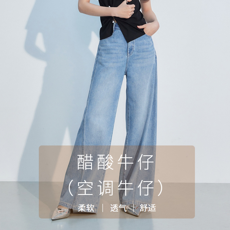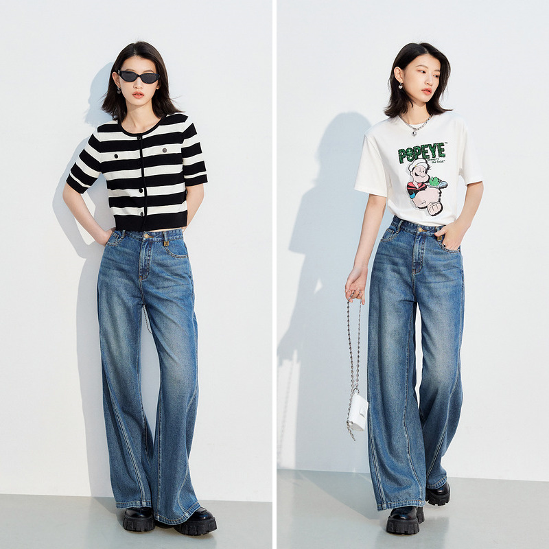 女复古长裤 森马牛仔裤 2025春季 新款 百搭 森柔牛仔 阔腿裤 商场同款