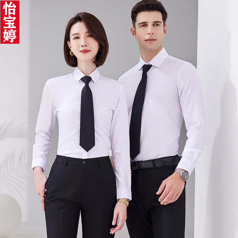 白衬衣订做职业工装 男女士工作服棉长袖 刺绣印logo 衬衫 定制短袖