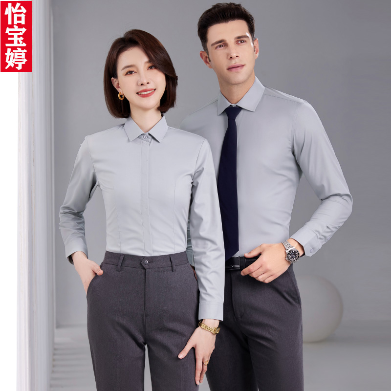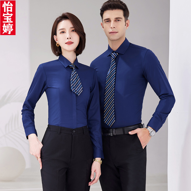 职场蓝色衬衫 工作女士工装 女职业长袖 商务上班正装 衬衣女 衬衫 秋季