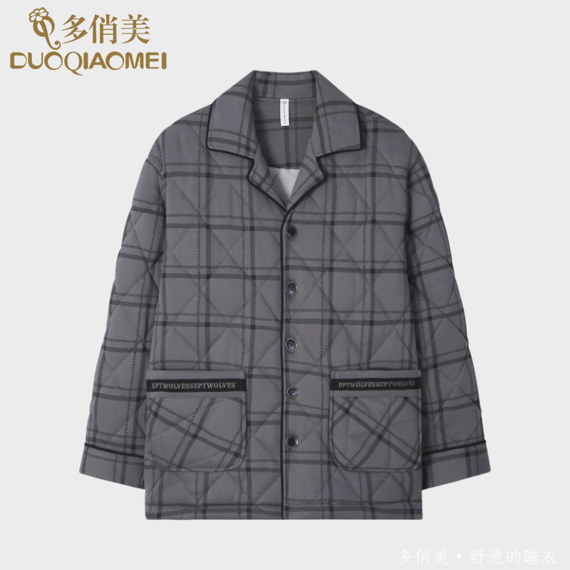 三层加厚纯棉夹棉单独上装 秋冬季 格子上衣宽松 睡衣男士 2025年新款