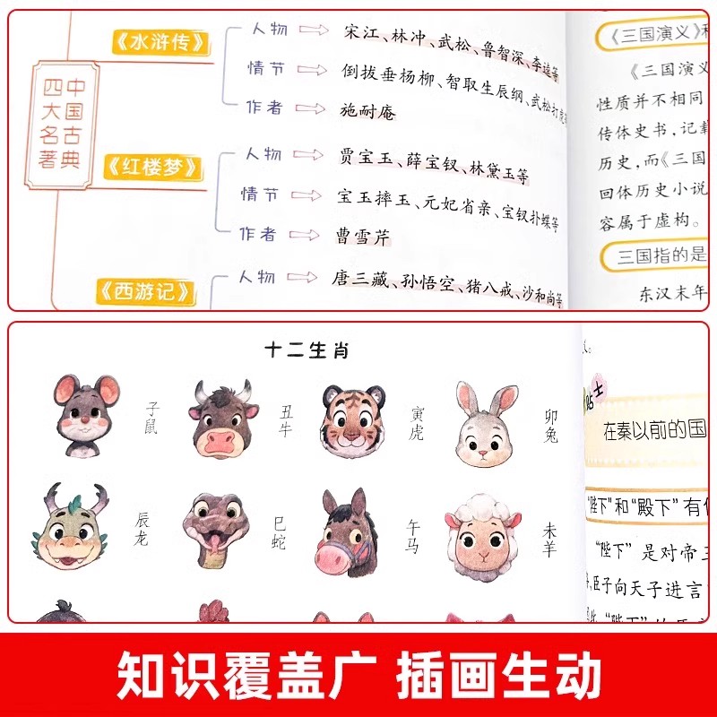 百科全书初中小学生阅读课外书籍历史类儿童版 中国古代文学常识概况大百科课本里 漫画中华文化常识一千问正版 抖音同款