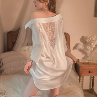 纯欲高级感男友风冰丝白衬衫 2025新款 睡裙家居服 夏季 性感睡衣女款
