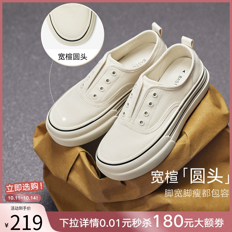 百搭厚底女运动休闲鞋 松糕厚底帆布鞋 A1213CM5 新款 百思图2025秋季