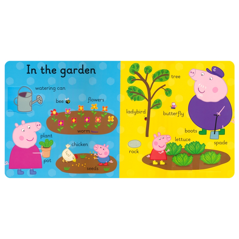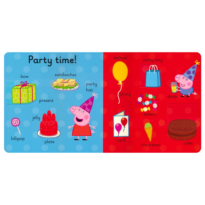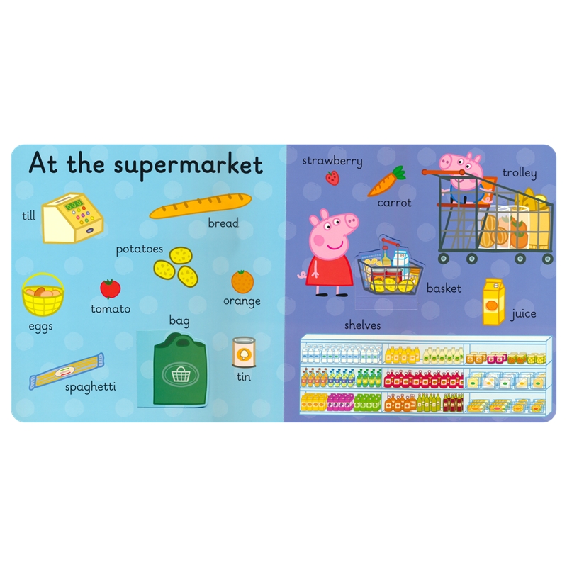 100 纸板翻翻书 Pig First 幼儿认知 Peppa 交通工具 Words 家庭物品 英语启蒙 小猪佩奇100个单词赠音频 英文原版 食物