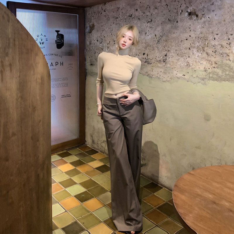 新款 套装 气质修身 针织上衣低腰毛边设计感职场西裤 半高领中袖 夏季
