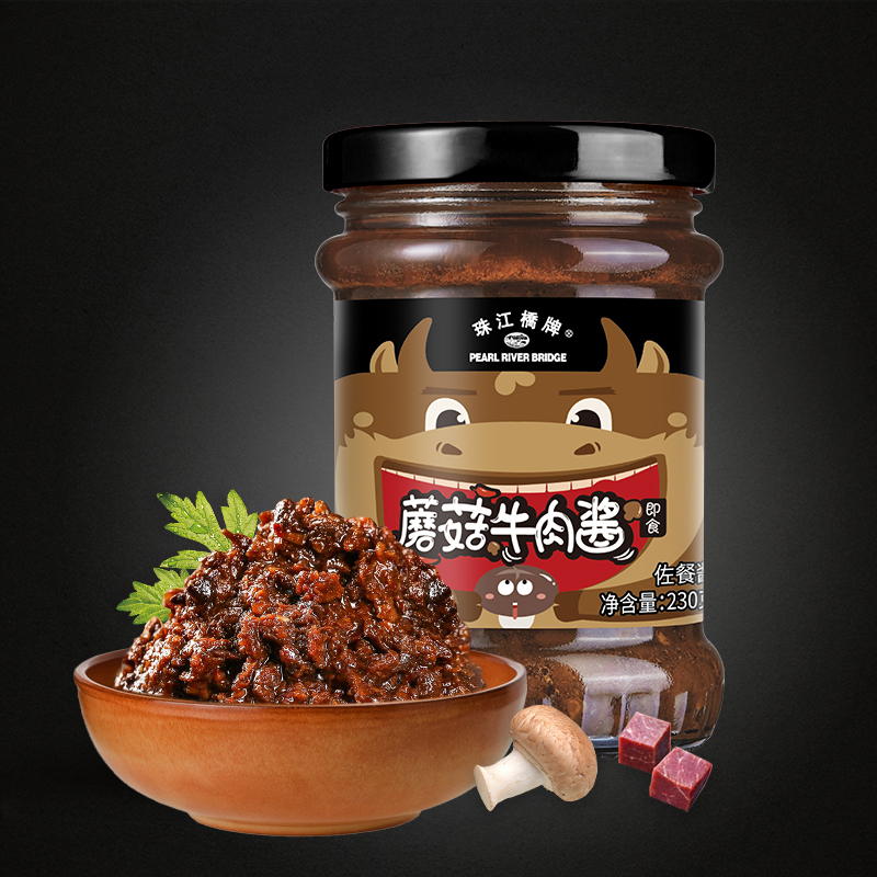 珠江桥牌蘑菇牛肉酱拌饭酱学生230g蘑菇香辣酱拌面下饭酱正宗瓶装