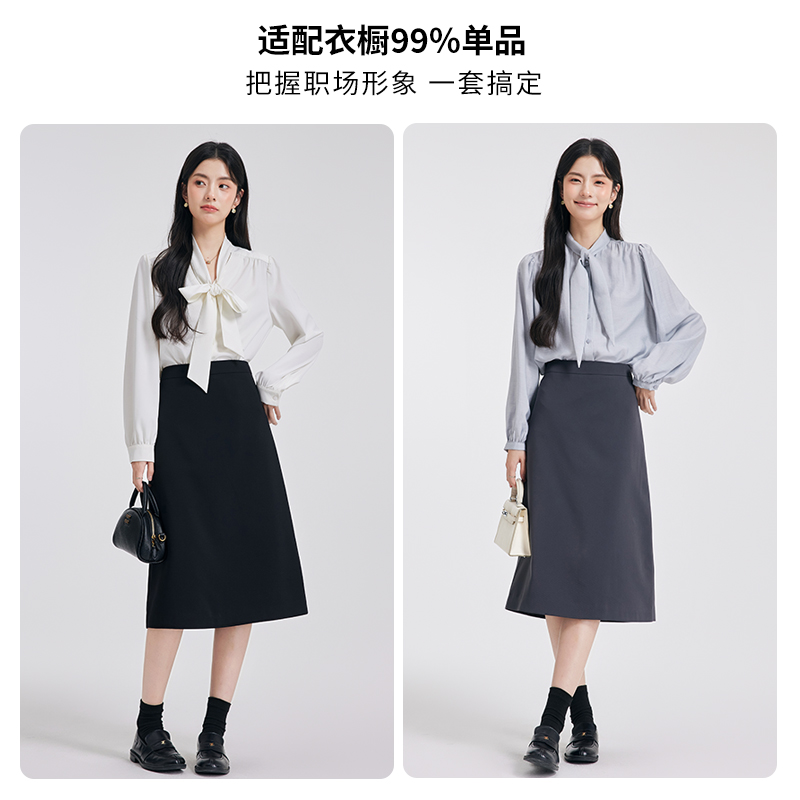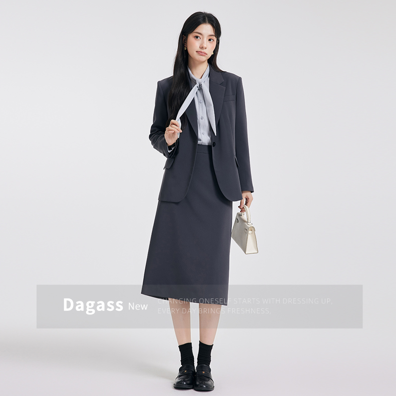 达佳诗灰色西装 高级感a字半身裙气质轻奢春秋直筒裙 裙女职业正装
