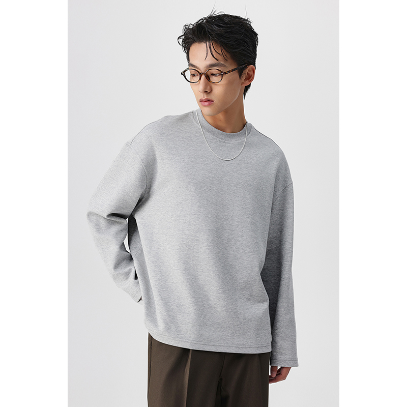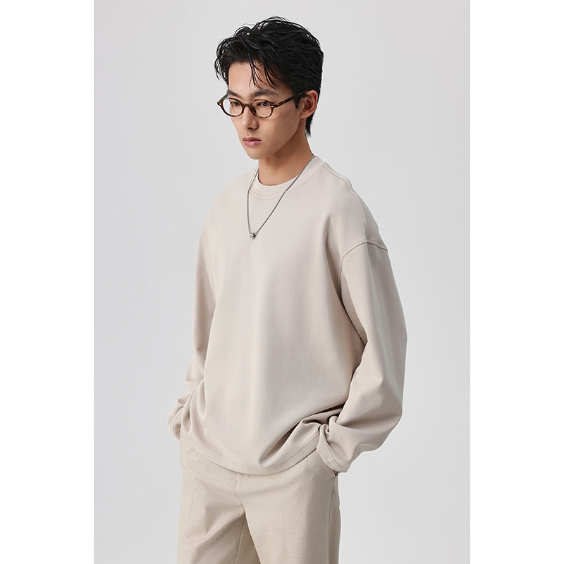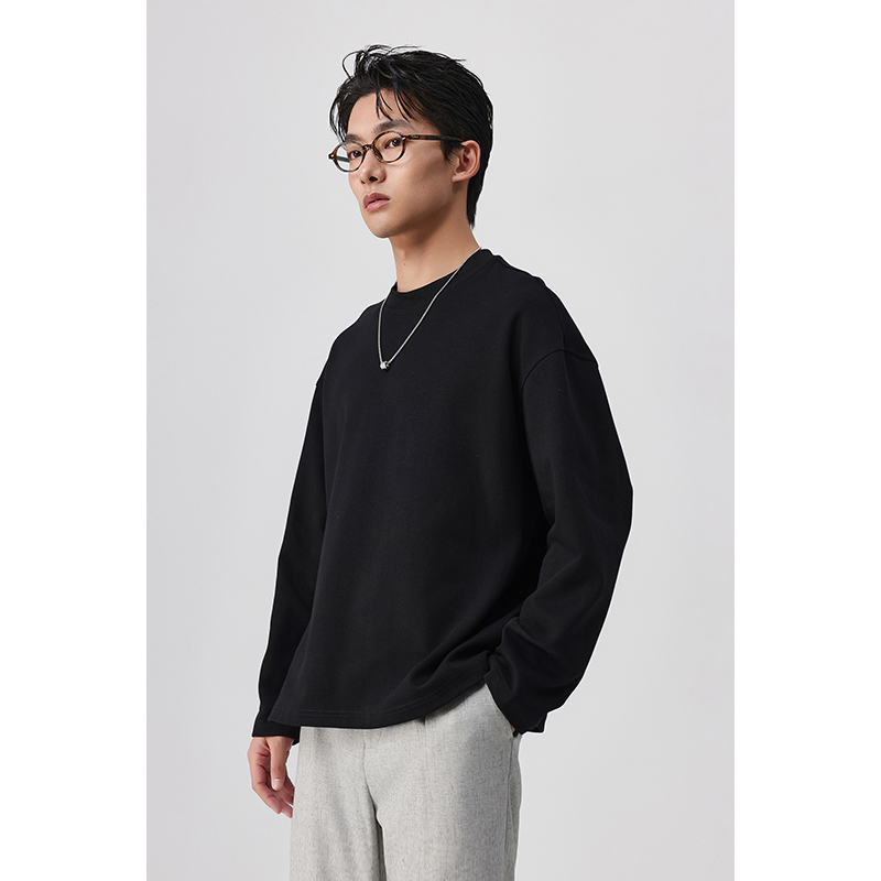 体恤衫 重磅长袖 宽松落肩男士 厚款 纯色百搭舒适 T恤男2025年春夏季