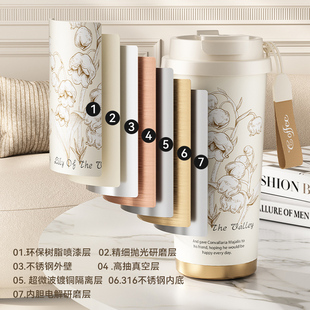 捷安玺铃兰花保温杯咖啡杯女高颜值2025新款 便携随行杯子吸管水杯