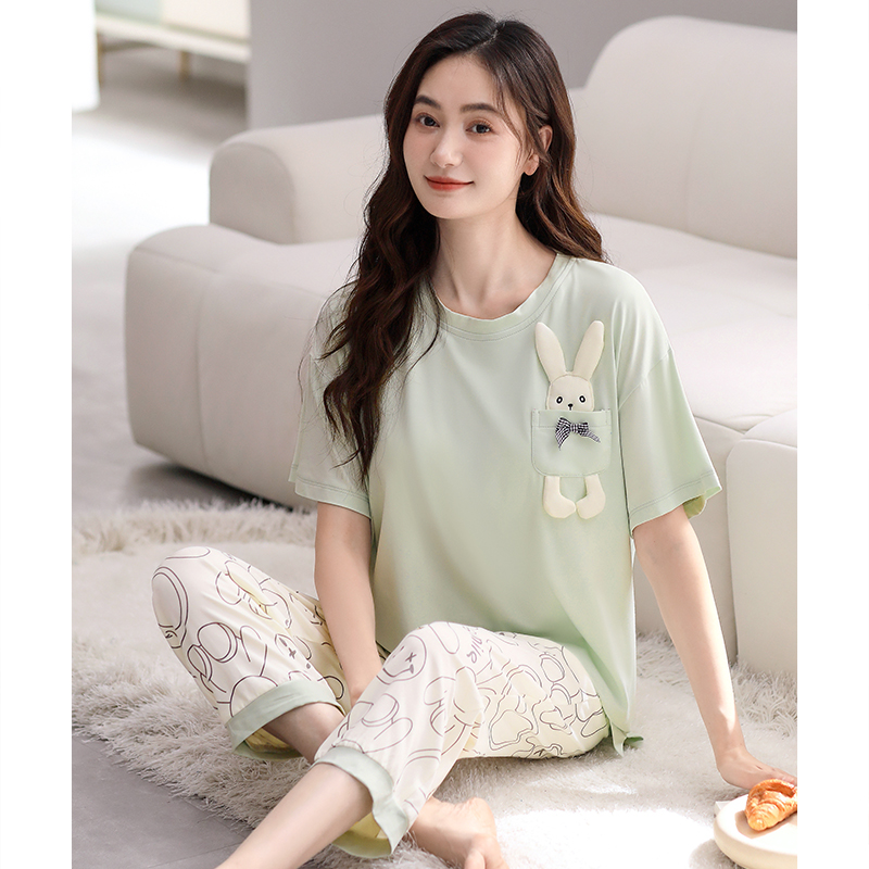 冰丝夏款 带胸垫睡衣女士夏季 夏天2025新款 七分裤 家居服 莫代尔短袖