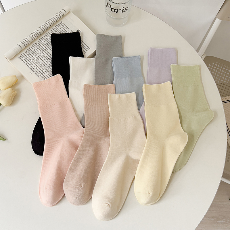 女秋冬堆堆袜纯色防臭吸汗百搭女袜礼盒 中筒袜6双装 芭芭农场