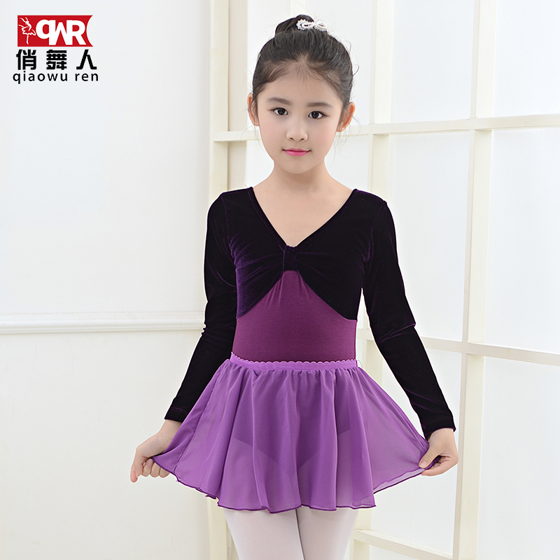 女童中国舞练功服棉 连体跳舞服装 俏舞人儿童舞蹈服宝宝秋冬季 长袖
