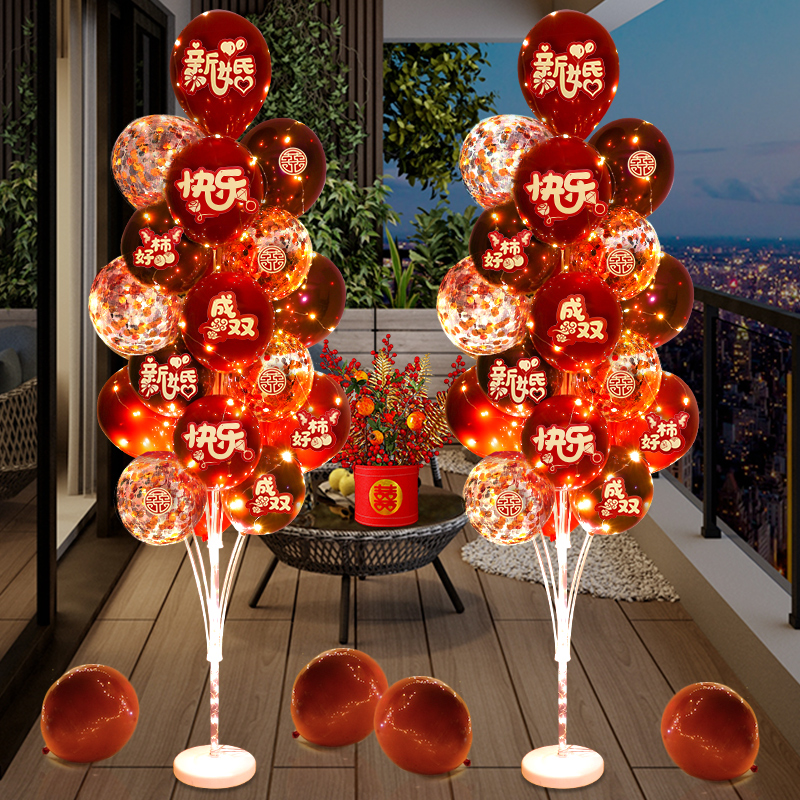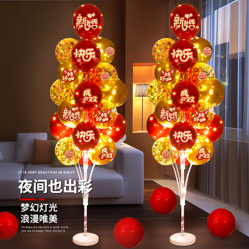 婚房布置套装 男方发光气球地飘立柱结婚布置女方路边路引客厅卧室