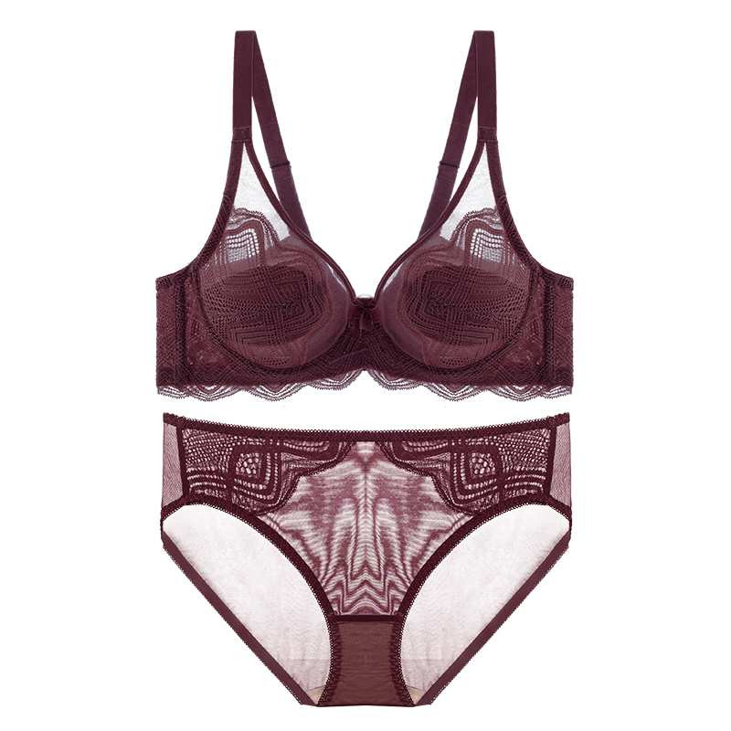 性感纯欲 蕾丝文胸罩套装 好奇蜜斯大胸显小胸防下垂内衣女薄款 法式
