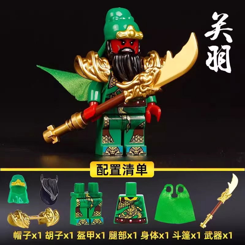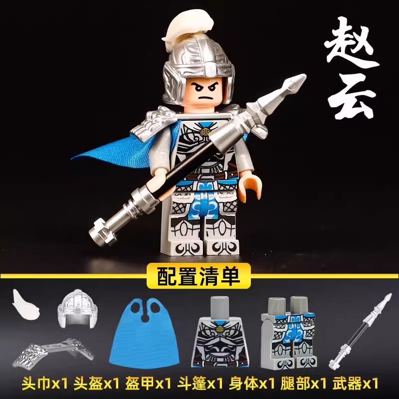 三国小侠积木人仔刘备关羽周瑜曹操五虎上将男孩儿童拼装 玩具模型
