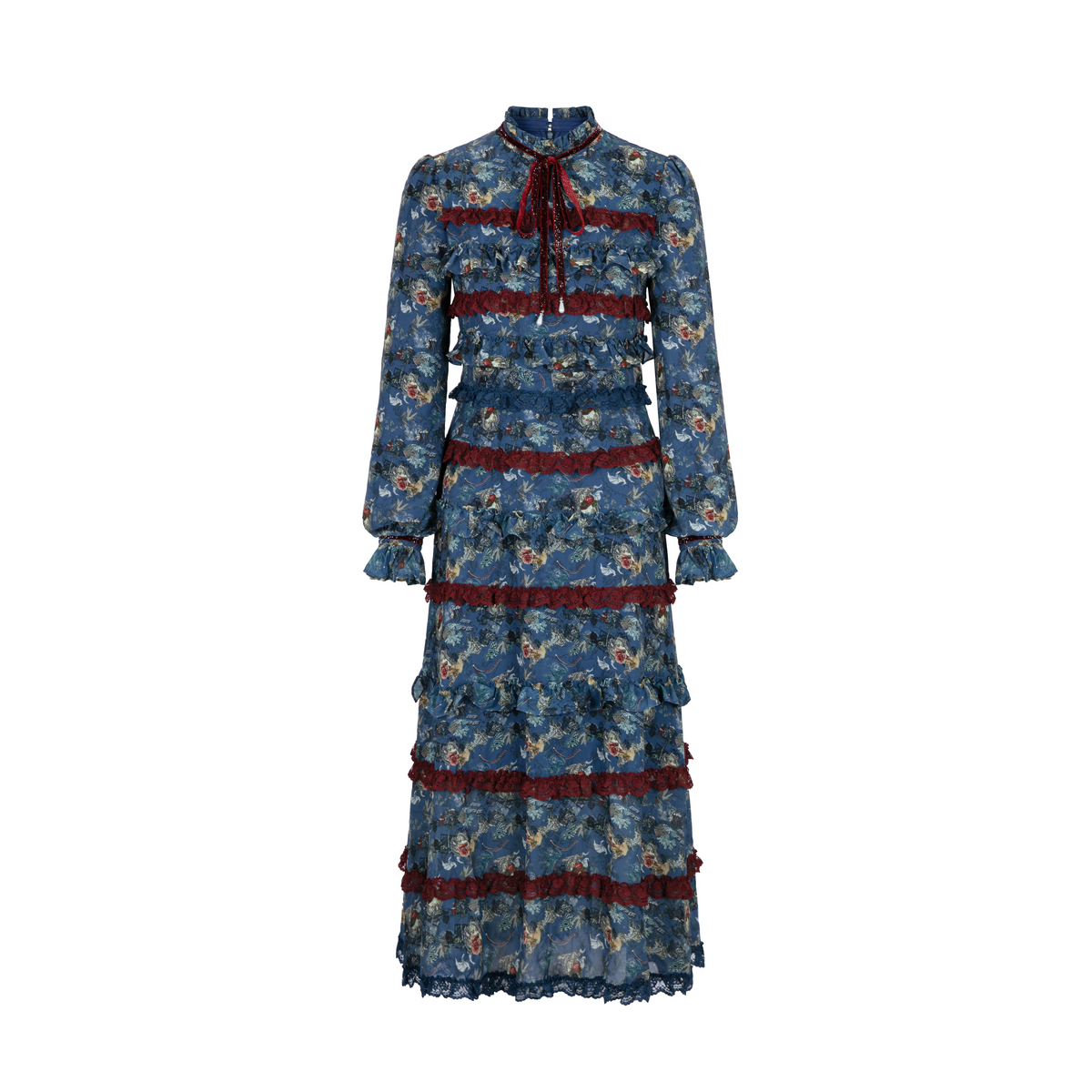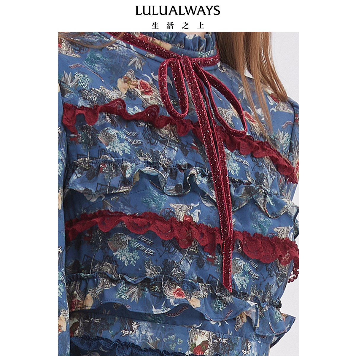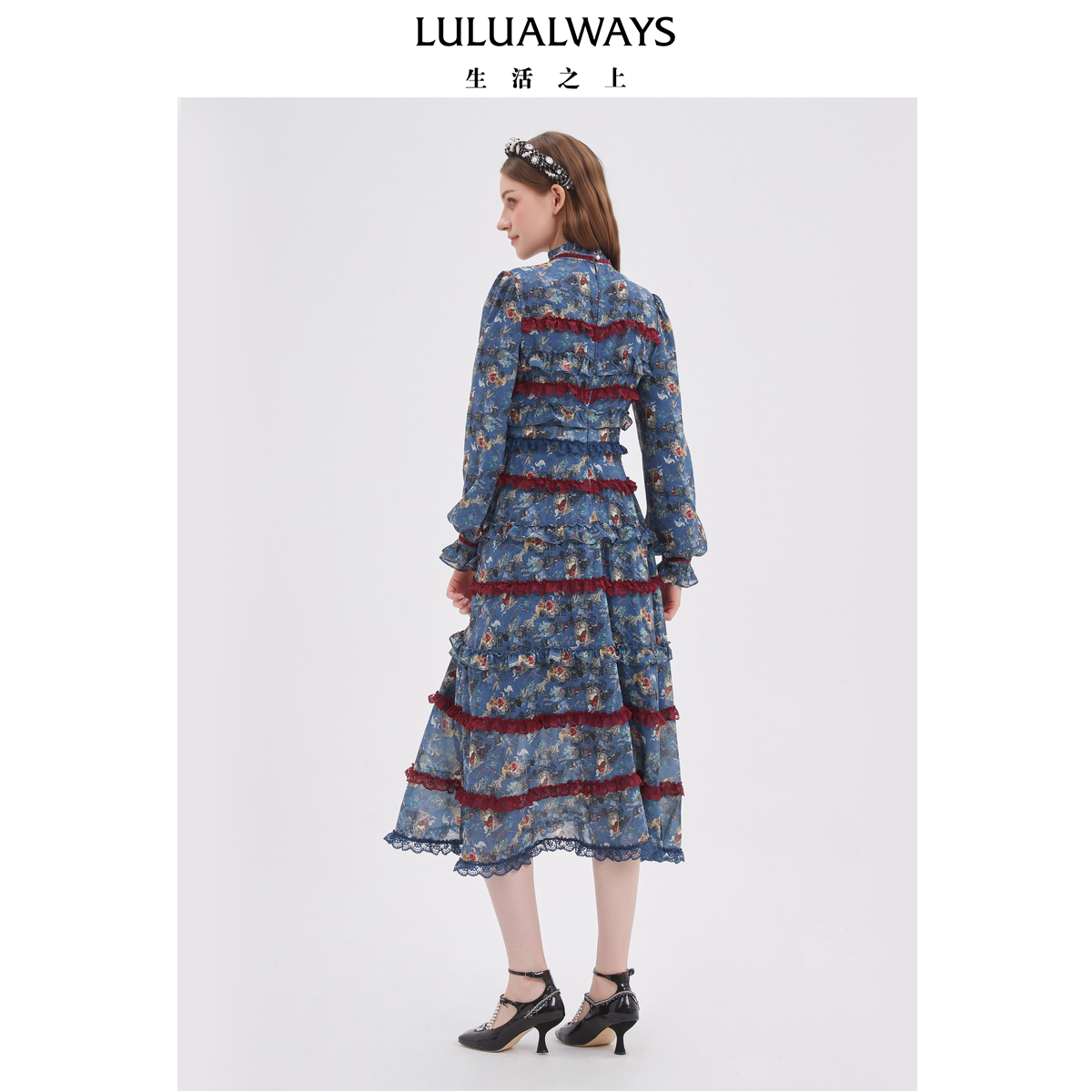 气质复古茶歇裙V领碎花连衣裙女 珂莱蒂尔秋季 花韵梦境