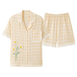 可外穿家居服套装 纯棉薄款 文胸居家 短袖 浪莎带胸垫一体睡衣女夏季