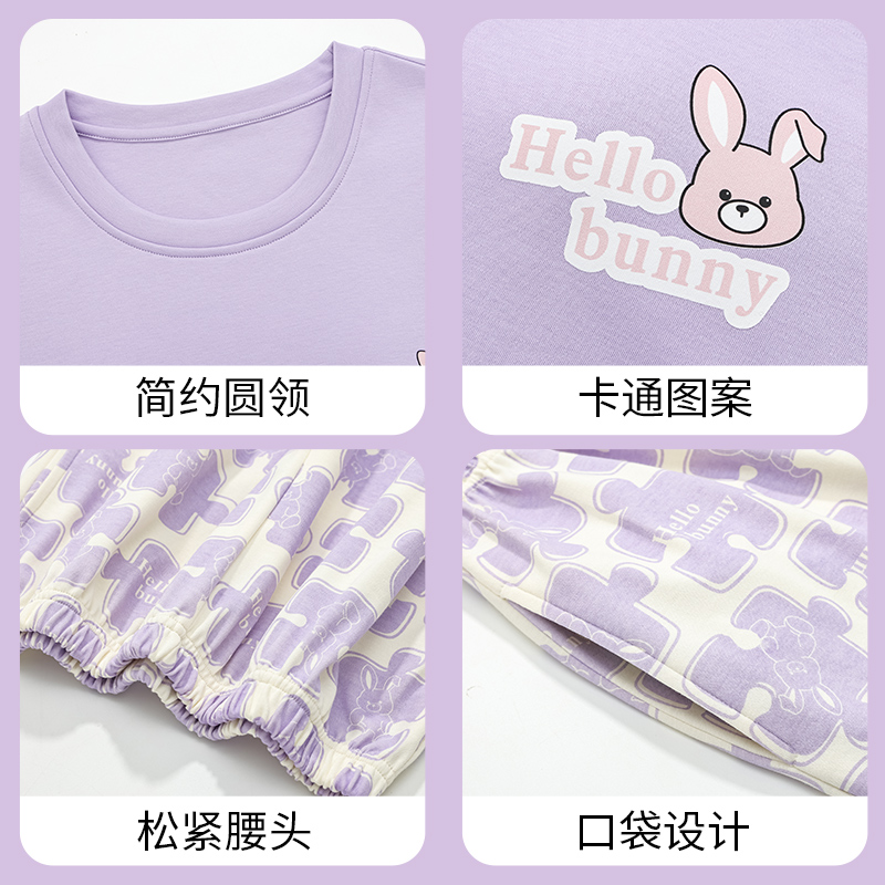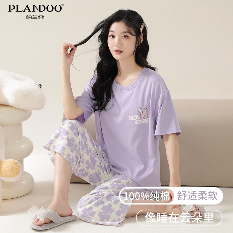 夏季 女士2025新款 纯棉短袖 女套装 休闲可爱家居服 长裤 芬腾睡衣女款