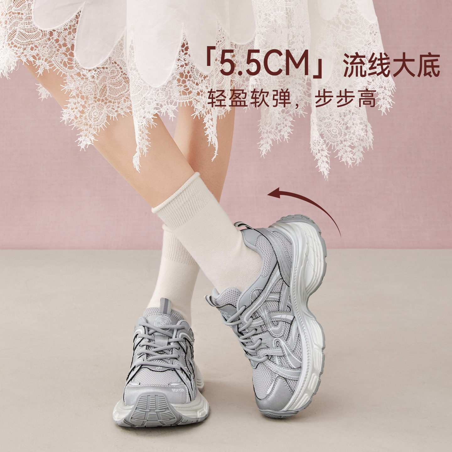 女运动休闲鞋 网面透气老爹鞋 D5916CM5 新款 双11预售百思图2025秋季